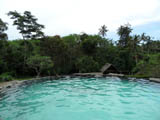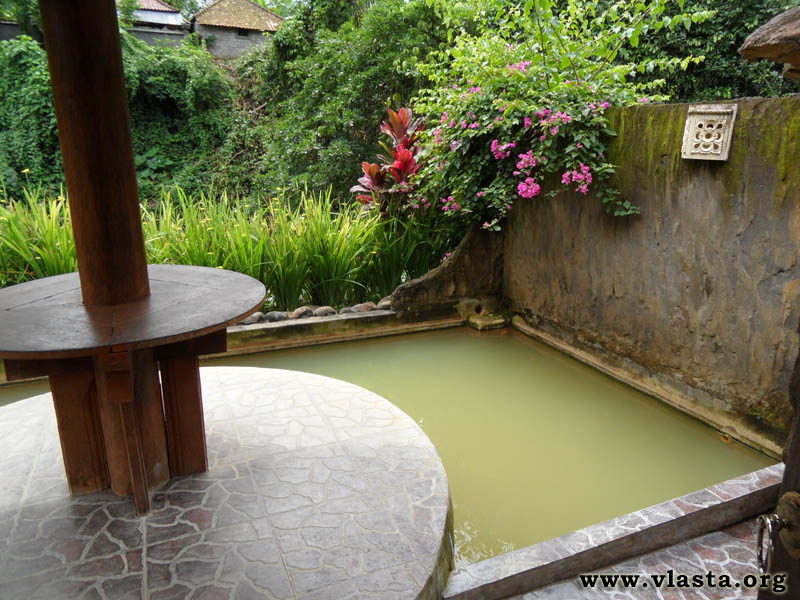 Při svém prvním "mopedářském" výletu zastavuji u termálních pramenů Penatahan. Nejdříve si dávám malý oběd nedaleko vstupu do celého areálu. Tyto termální prameny jsou soukromé a platí se zde na místní poměry vysoké vstupné 50 IDR, v prípadě privátní "tůně" 100 IDR. V recepci se domlouvám, že si celý objekt jen rychle projdu, pak si ale říkím, že je 24. prosince, Štědrý den, a tak se je potřeba zahřát :) Platím vstupné a už si užívám dvou bazénů. Vrchní je napuštěn normální vodou ohřátou sluníčkem. Do spodního bazénu tryská několik pramenů termální vody. Protože se zde platí vstupné, tak zde moc lidí není. Je tu pekný klid.