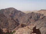 Ještě před návrat k autobusu se střídavým poklusem a rychlou chůzí vydávám na vrchol hory Džabal Attúf (1035m). Pod vrcholem potkávám místní dívku na oslíku. Za bakšiš mi ukazuje cestu a nechá se vyfotit. Zhoršující se viditelnost a nedostatek času mi brání podrobněji vrchol prozkoumat. Snažím se najít hlavní obětní místo Petry, ale nejsem si jist, že jsem ho našel.