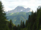 Ráno mě čeká nepříjemné překvapení. Zjišťuji, že jsem asi zapomněl pas. Doufaje že mi ho pošlou do příštího kempu, zanechávám kolo i s veškerou baťožinou u restaurace a vydávám se na trek k Lago di Federa. Cestou je nádherný pohled na hory Mt.Pelmo, 3 168m a Mt.Civetta, 3 220m Mám dost času, tak obcházím i hřeben Croda da Lago. S příchodem ke kolu začíná přeháňka. Po ní sjíždím asi nejkrásnější sjezd, cca 8 kilometrů k Selva di Cadore a po asi 500m metrech pokračuji ve sjezdu až do městečka Caprilei. Klesl jsem z 2 238m na 998m. Pokračuji po krásné cyklostezce vybavené i tábořišti, na jednom jsem přespal, směrem k Malga Ciapela.