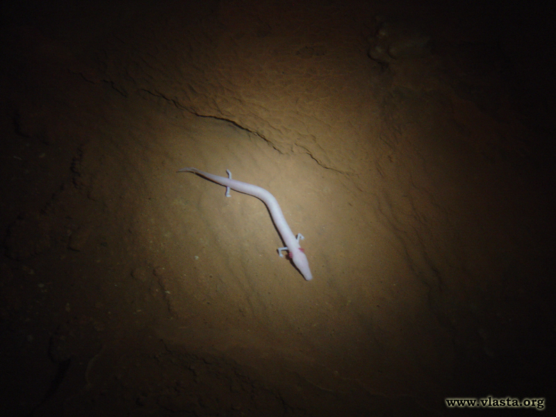 Maskotem jeskyně je zde žijící živočich - macarát jeskynní (vědecký název Proteus anguinus). Jde o slepého slabě narůžovělého endemického obojživelníka žijícího v balkánských krasových jeskynních. Macaráta jsem viděl na fotkách, ale moc jsem nevěřil, že nějakého spatřím v jeskyni. Opak byl pravdou - průvodce nám dva exempláře ukázal ve spodní části jeskyně. Zde se pomalu pohybovali ve vodě. Dospělci dosahují velikosti kolem 20 - 25 cm, včetně ocasu, vzácně mohou dorůst i 35 cm. Mladí pohlavně dospívají v 7 letech a dožívají se 30 - 40 let, výjimečně 100 let. Macaráti jsou např. schopni přežít i při teplotách nad 30 °C, ale i v teplotách okolo bodu mrazu. Při vystavení světlu macaráti tmavnou až úplně zčernají, jsou-li pak přeneseni do tmy, opět se zabarví do světle růžové.