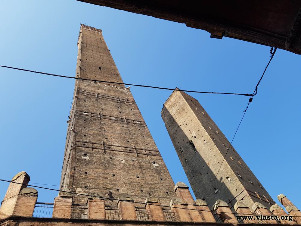 Due Torri, (Dvě věže), jsou ikonickou dominantou Boloně a symbolem jejího středověkého dědictví. Vyšší z nich, Asinelli, měří úctyhodných 97 metrů a je jednou z nejvyšších šikmých věží v Itálii, zatímco menší Garisenda dosahuje 48 metrů, ale je výrazně nakloněná, což ji činí ještě působivější. Obě věže byly postaveny v 12. století jako součást městského opevnění a prestižní ukázka bohatství tehdejších šlechtických rodin. Dnes je možné vystoupat po 498 schodech na vrchol Asinelli a užít si dechberoucí výhled na střechy Boloně, její arkádové ulice i vzdálené kopce Apenin. Doporučuji udělat rezervaci předem, protože vstup do věže je regulován.
