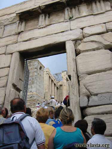 Propylea 437-432 př.n.l. Vstupní brána do Acropole postavil architekt Mnesicles. Tvoří ji zeď s několika vchody s prostornou síní.
