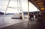 Já jsem plul posledním trajektem roku 2000, 22. září, odplouvajícím ze Seward. Cesta do Juneau trvala dva dny. Zde jsem čekal jeden den na trajekt plující do Bellingham,WA, kam cesta trvala další 4 dny. Lístky stály $149 a $225 bez kajuty a bez jídla. Kajuta by stála asi $20 na den. Můžete spát ve spacím pytli v zadní vyhlídkové místnosti a nebo na "solárium" - zastřešené prostranství na nejvrchnější palubě. Zde můžete také postavit stan, ten ale nesmí být pod přístřeškem. Je zde nejlepší výhled, ale občas to fouká...Většinou je to místo, kam se uchýlí mládež.