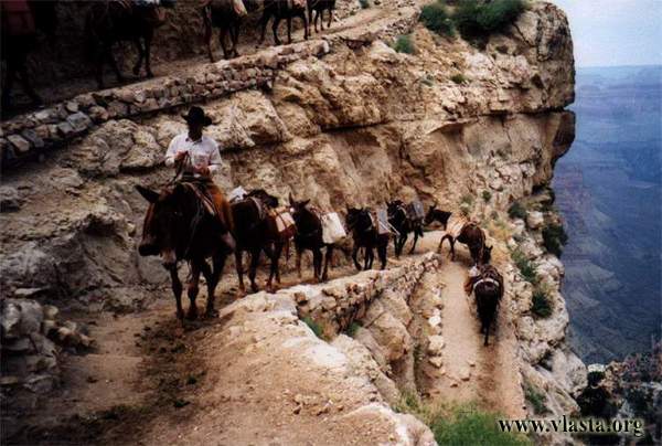 Grand Canyon je 16 km dlouhý a jeho max. hloubka je 1.6 km. Je největší kaňonem na světě. Protéká jím řeka Colorado.