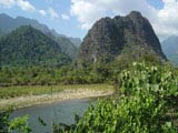 The magnificent karst limestone mountains lining Nam Song River. The imposing structures rise up out of the land and run for kilometers, abutting pancake flat rice fields and the river. Limestone cliffs are full of caves. Some of them play spiritual role for local Hmong and Yao people. Some of them are so large that they have not been explored yet. For action and adventure, there are caves to explore, trekking, kayaking and rafting trips and for the ultra-adventurous, there's rock climbing.