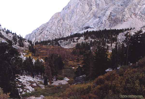 On the eastern border is located the highest peak in "lower 48" - Mt. Whitney (4 418m). The easiest access is from eastern side by trail John Muir. To this trail is access by 20 km long road from "Lone Pine". I use this trail too. I am sorry I had not more time and not visit other parts of the park. I hiked with a friend of mine - Kevin and we did it in two days. Trail starts at 2 800m and after 30km finish at 4 418m. We started at the evening when my friend finish his work (ranger) and we stayed at camp Trail Camp (4000m). I though it would be easy from this camp to reach the summit but it took us several hours to get there.