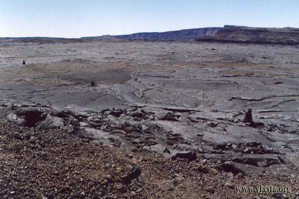 There are two types of Hawaiian lava. According to gas and temperature it's created "Pahoehoe" or "'a'a". If temperature is high lava flows faster and than has smooth and ropey surface This one is called "Pahoehoe". On the other side "'a'a" is more jagged and clinkery. Lava has a sharp surface and that does not fit to my shoes. With time shoes are worn out.