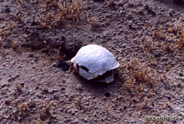 Tortoise - can live without water whole year. They store water in their bladders and can reabsorb the liquid during a drought. But when frightened, they frequently empty their bladders and this loos of water can be fatal. They live on sand or gravel desert valley between 300-1300m in elevation. Desert tortoise eat a wide variety of grasses and flowers of annual plants. Like humans, they reach adulthood between the ages of 14-20 years and live from 60 to 80 years. On the other hand 98% of eggs and hatchlings die before reaching maturity.